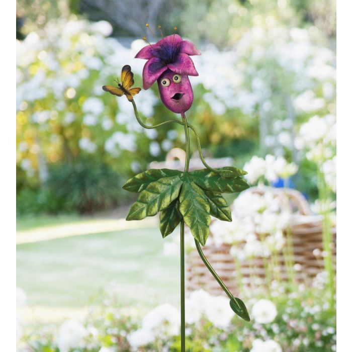 These fun and goofy designs will lighten up any day when you see these quirky metal flower characters. Create an amusing scene by getting the whole set! Iridescent sheen and three dimensional features. Comes in 4 flower styles.